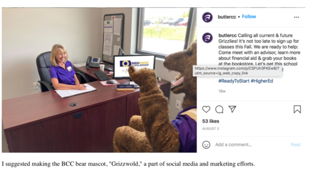 I motivated making BCC’s bear mascot a larger part of marketing efforts.